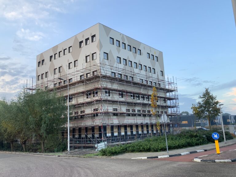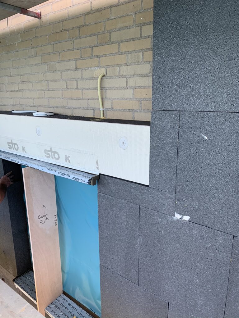 We hebben hier gekozen voor een buitengevelisolatiesysteem van StoTherm Classic dat bekend staat om zijn hoge scheur- en stootvastheid. Het voordeel hiervan is dat het thermische isolatie combineert met een duurzame en esthetische afwerking. Als afwerking is gekozen voor de Stolit K en StoLutosan sierpleister, een organische pleister met een korrelstructuur van 2 mm. Deze pleisters zijn elastisch, mechanisch belastbaar en biedt een hoge kleurstabiliteit. En de lotuseffect-technologie van de pleister geeft het een verhoogde waterafstotendheid, waardoor vuil minder snel aan het oppervlak hecht en de gevel langer schoon blijft. Dat is voor de lange termijn zeker een voordeel.