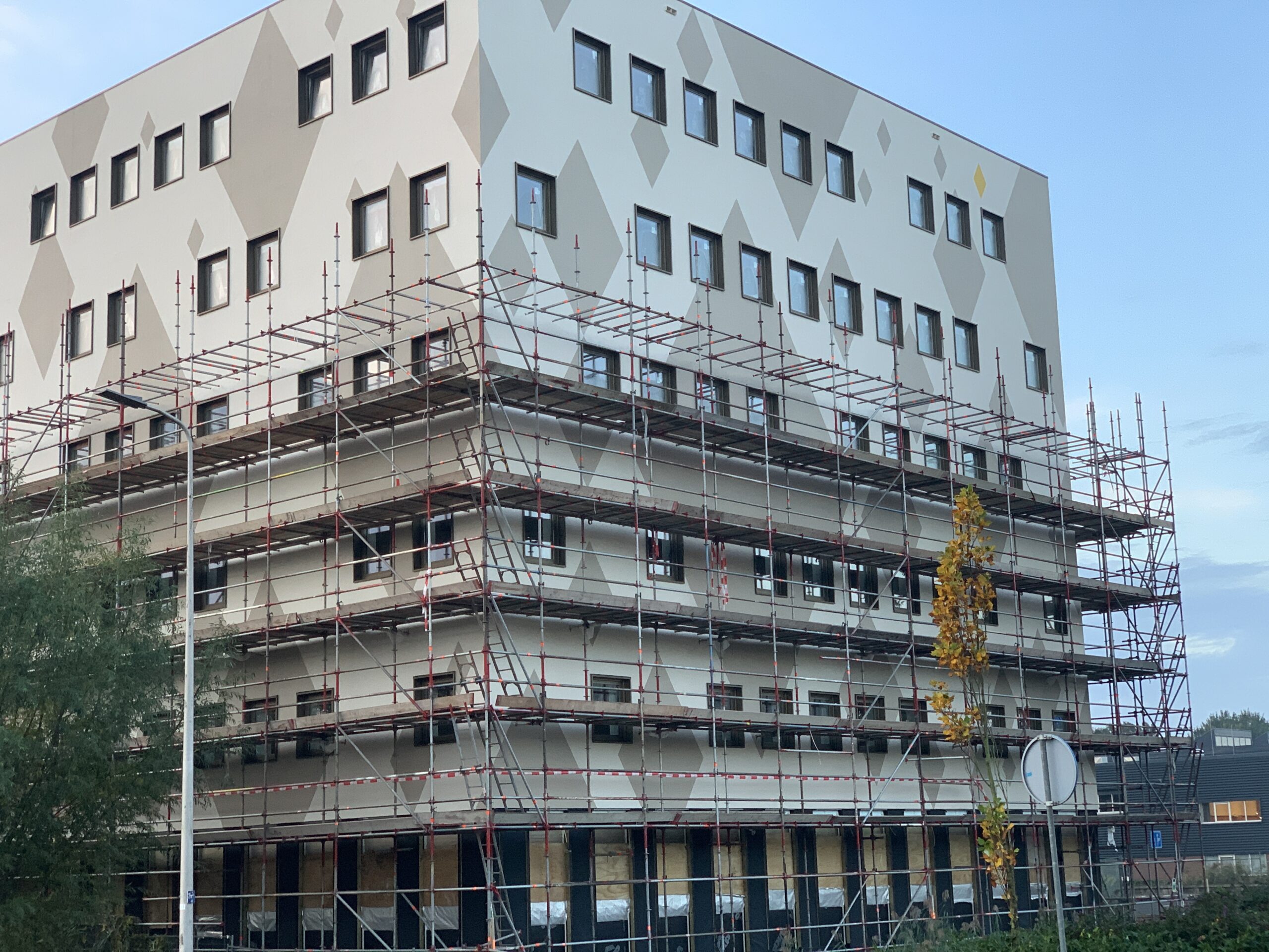 We hebben hier gekozen voor een buitengevelisolatiesysteem van StoTherm Classic dat bekend staat om zijn hoge scheur- en stootvastheid. Het voordeel hiervan is dat het thermische isolatie combineert met een duurzame en esthetische afwerking. Als afwerking is gekozen voor de Stolit K en StoLutosan sierpleister, een organische pleister met een korrelstructuur van 2 mm. Deze pleisters zijn elastisch, mechanisch belastbaar en biedt een hoge kleurstabiliteit. En de lotuseffect-technologie van de pleister geeft het een verhoogde waterafstotendheid, waardoor vuil minder snel aan het oppervlak hecht en de gevel langer schoon blijft. Dat is voor de lange termijn zeker een voordeel.
